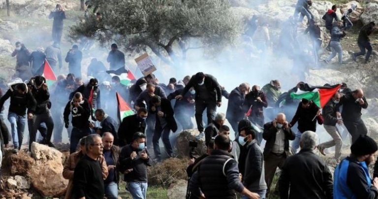 أصيب 3 مواطنين بالرصاص الحي، وآخرين بالرصاص المعدني المغلف بالمطاط، اليوم الجمعة، والعشرات بالاختناق بالغاز المسيل للدموع، خلال قمع قوات الاحتلال الإسرائيلي مسيرة قرية بيت دجن شرق نابلس.