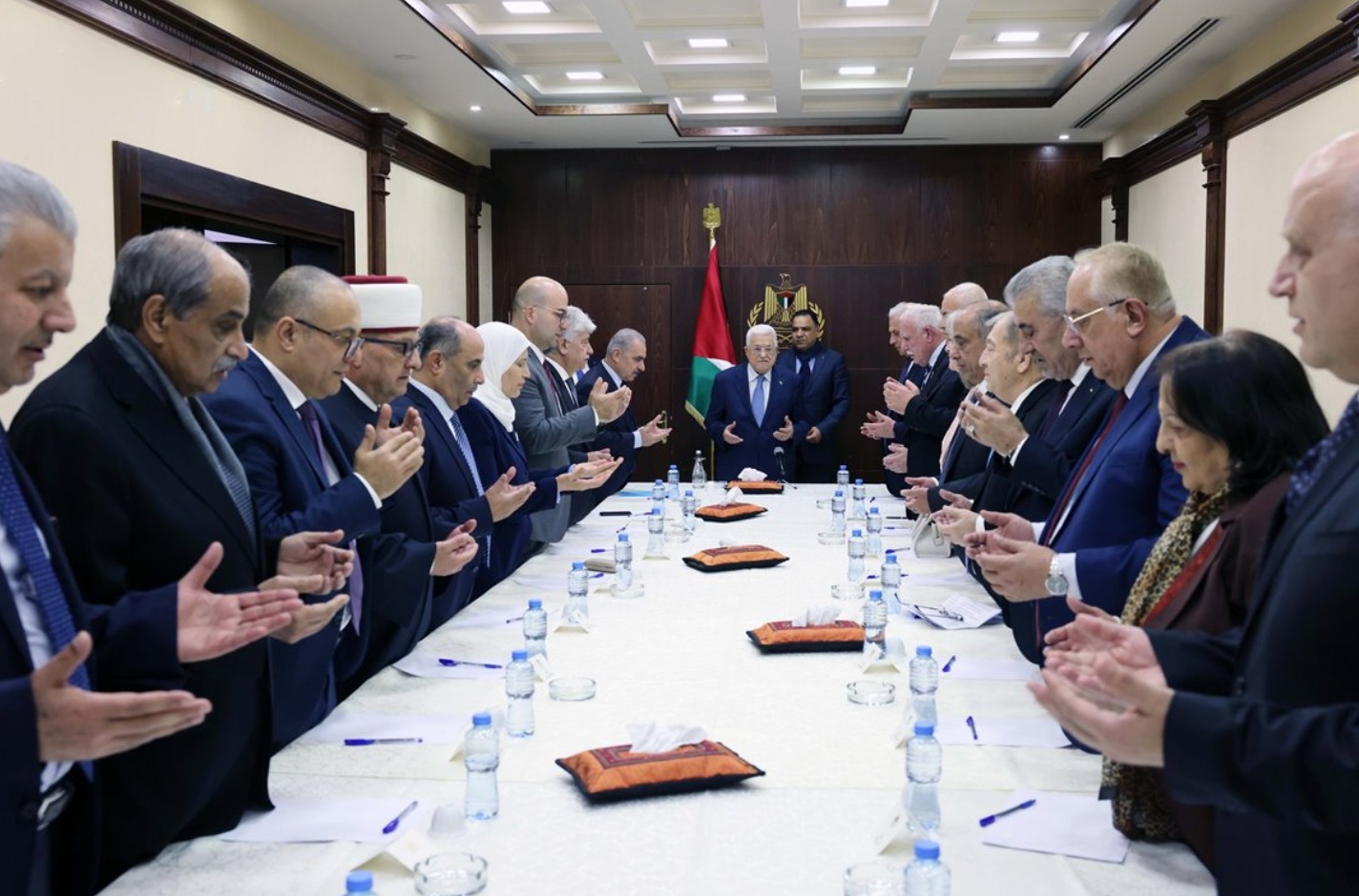 استقبل رئيس دولة فلسطين محمود عباس، مساء اليوم الإثنين، في مقر الرئاسة بمدينة رام الله، حكومة تسيير الأعمال، برئاسة رئيس الوزراء الدكتور محمد اشتية.