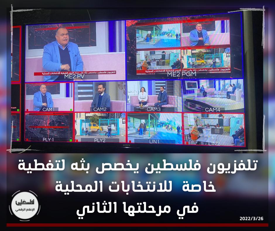 2022/3/26 – يخصص تلفزيون فلسطين بثه لتغطية خاصة اليوم السبت للانتخابات المحلية في مرحلتها الثانية من الـ7:00 صباحًا إلى ما بعد منتصف الليل أو حتى إعلان النتائج الأولية.