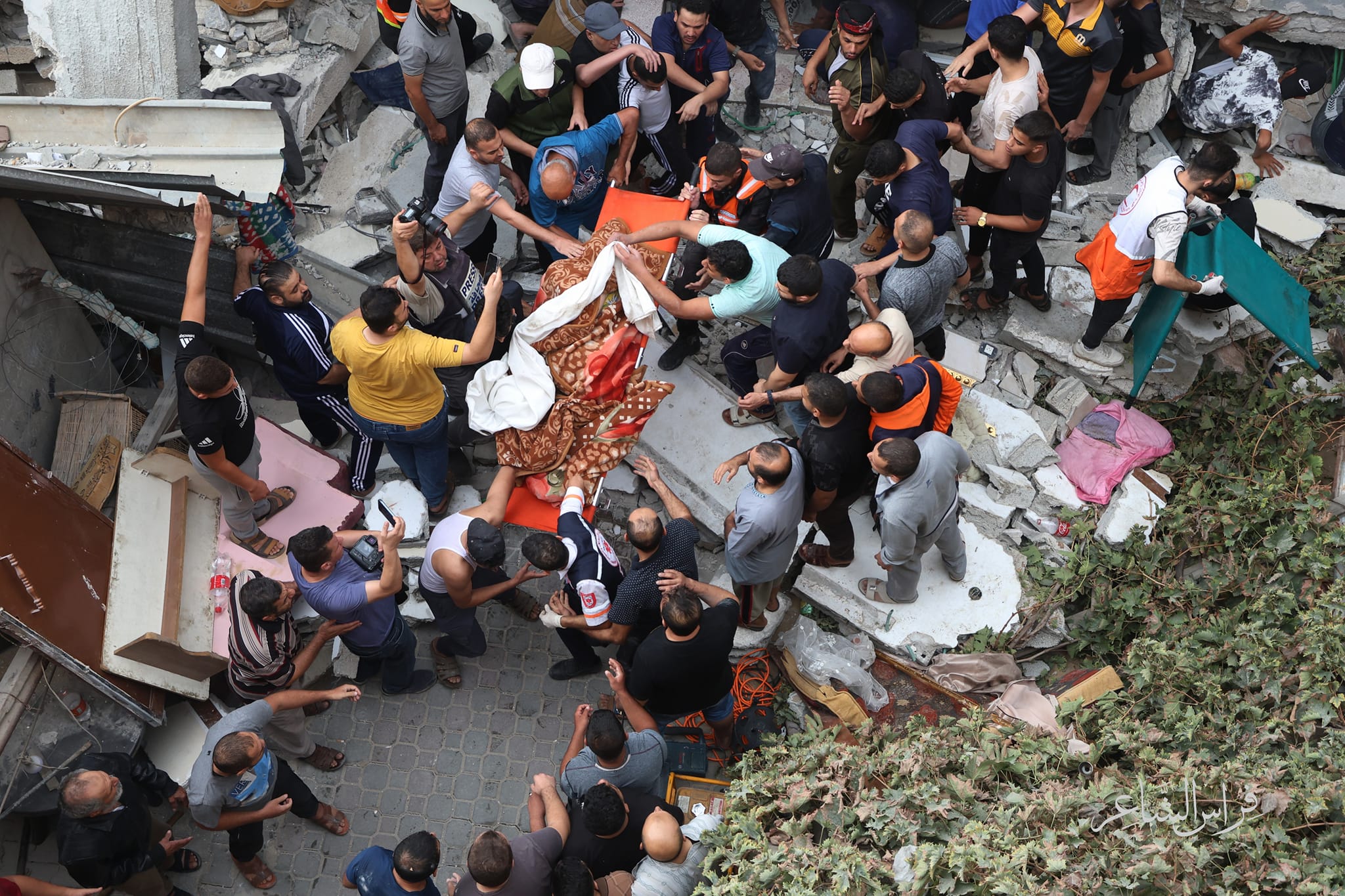 بالصور: انتشال جثماني شهيدين و12 إصابة إثر قصف طائرات الاحتلال منزل عائلة قشطة في رفح