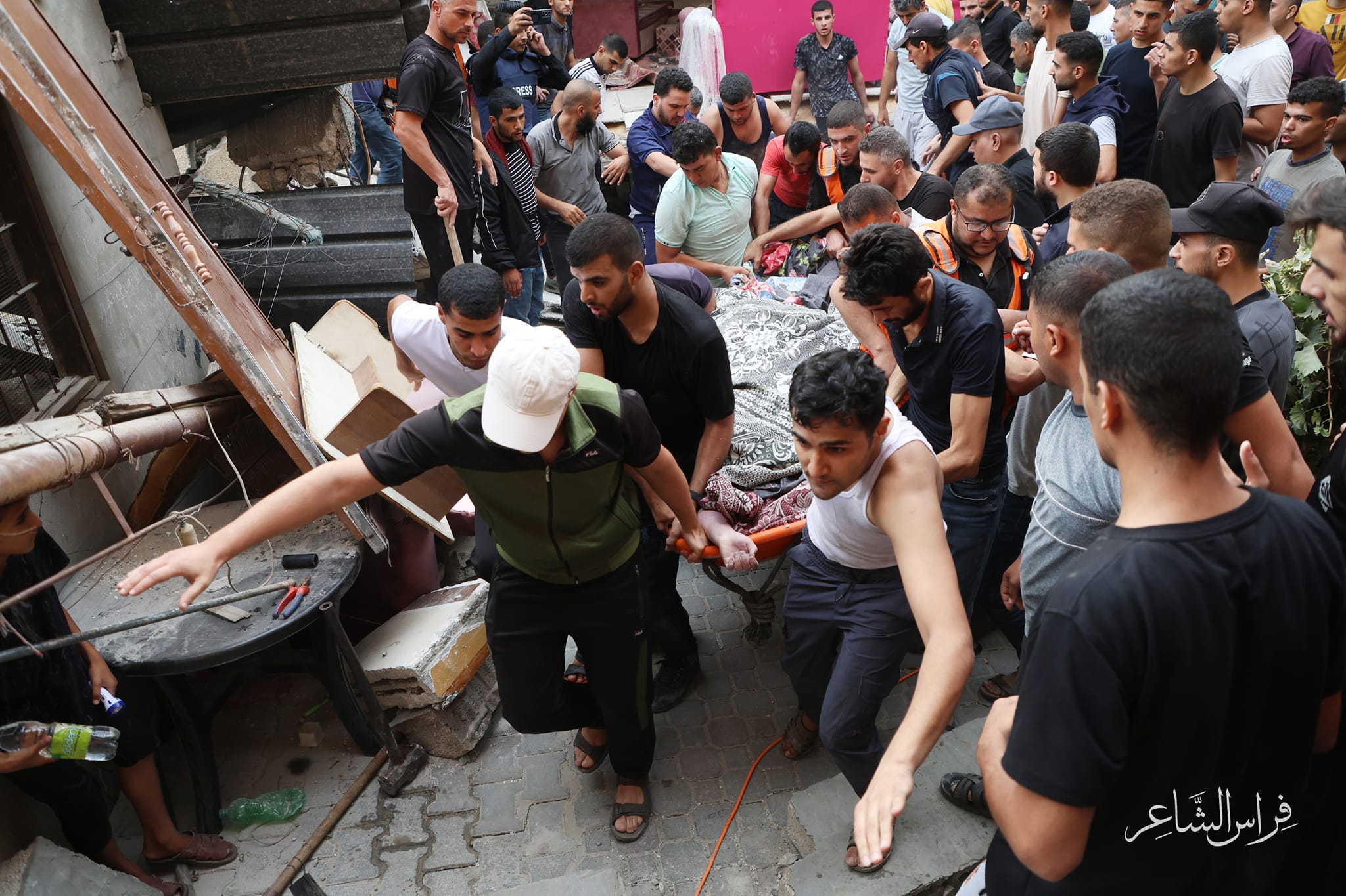 انتشال جثماني شهيدين و12 إصابة إثر قصف طائرات الاحتلال منزل عائلة قشطة في رفح