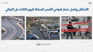 تواصل سلطات الاحتلال لليوم الثالث على التوالي حصارها لضواحي القدس المحتلة.