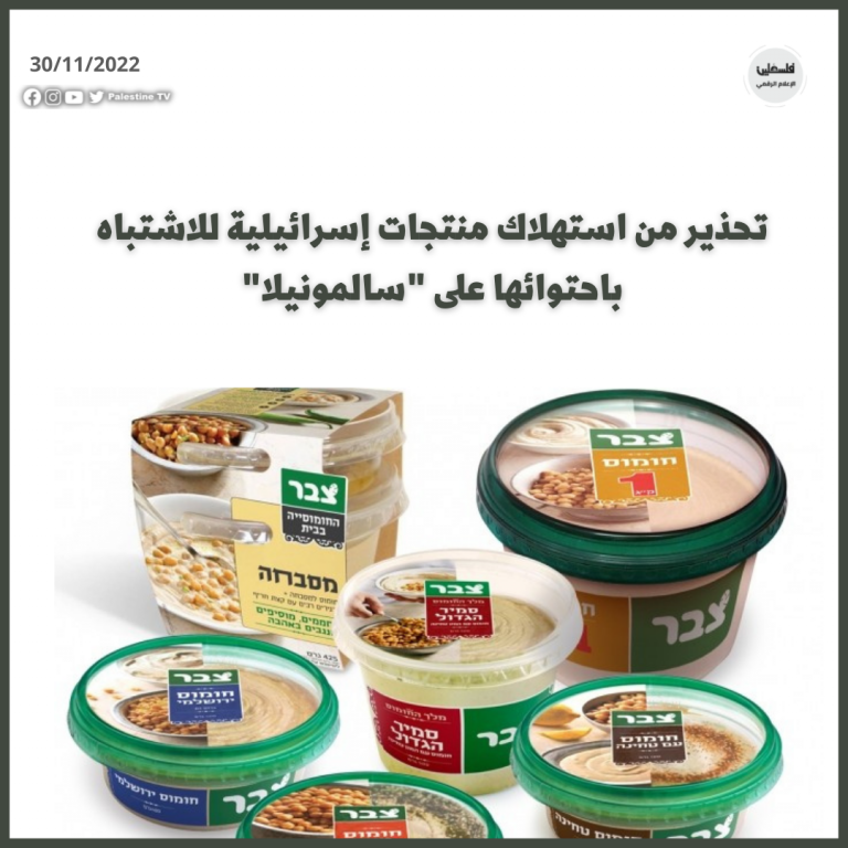 حذرت وزارتا الاقتصاد الوطني والصحة، اليوم، المواطنين من شراء واستهلاك الحمص والطحينة “صبار”، من انتاج شركة اوسِم الإسرائيلية، بعد الاشتباه بوجود بكتيريا “سالمونيلا” فيهما.