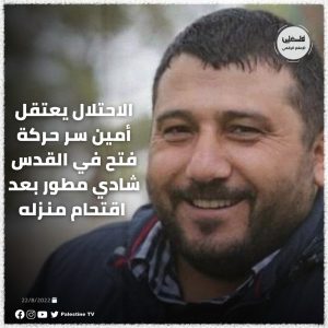 مدد الاحتلال اعتقال أمين سر فتح في القدس شادي مطور حتى يوم غد الثلاثاء.