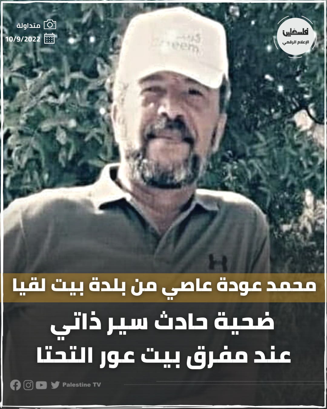 لقي المواطن محمد عودة عاصي 50 عاماً مصرعه اليوم إثر حادث سير ذاتي تعرض له بالقرب من مفرق بلدة بيت عور التحتا غرب رام الله.