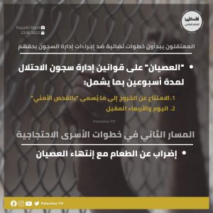 وأشار إلى أن الهدف من خطوات المعتقلين، هو دفع إدارة السّجون التراجع عن الإجراء، والتأكيد على جملة من المطالب التي تماطل في تنفيذها، وهي مطالب تتعلق بتحسين حياتهم الاعتقالية.