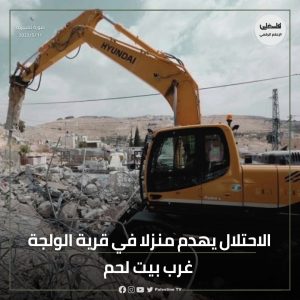 هدمت قوات الاحتلال، اليوم الأربعاء، منزلا في قرية الولجة غرب بيت لحم.