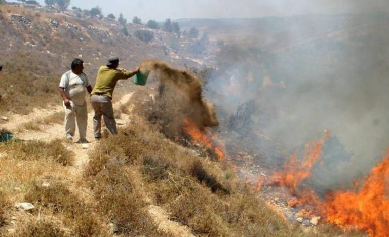 وكان المستوطنون أضرموا النار في أراض تقع شمال شرق البلدة، في المنطقة المسماة “النويطف” و”الماجور”، تحت حماية قوات الاحتلال.