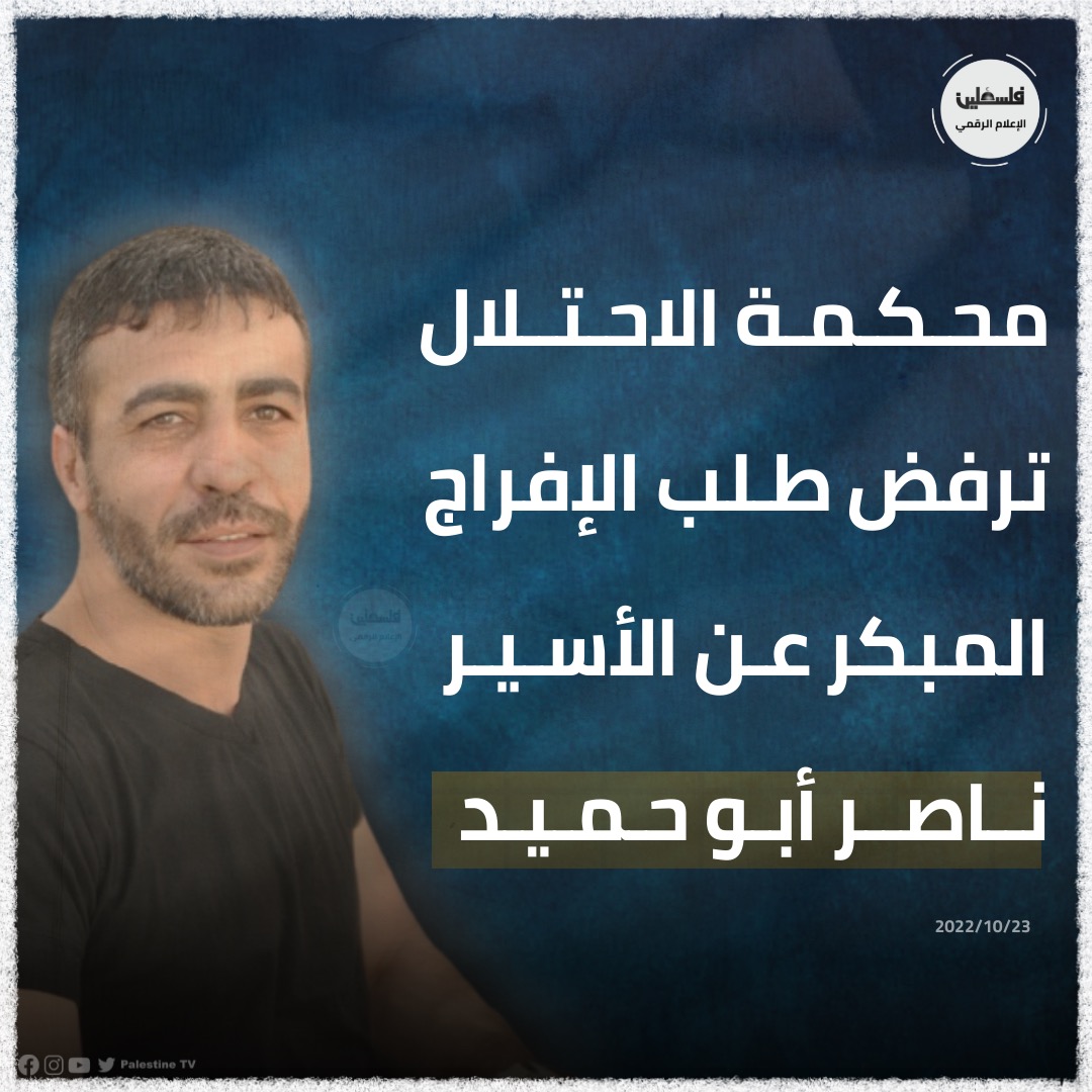 رفضت المحكمة المركزية للاحتلال في مدينة اللد، اليوم الأحد، طلب الإفراج المبكر عن الأسير المريض بالسرطان ناصر أبو حميد، وذلك رغم الحالة الصحية الحرجة جدًا التي يواجهها.