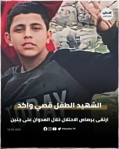 استشهد، مساء اليوم الأحد، الطفل قصي رضوان واكد (14 عاما) في جنين، متأثرا بإصابته برصاص قوات الاحتلال الإسرائيلي.