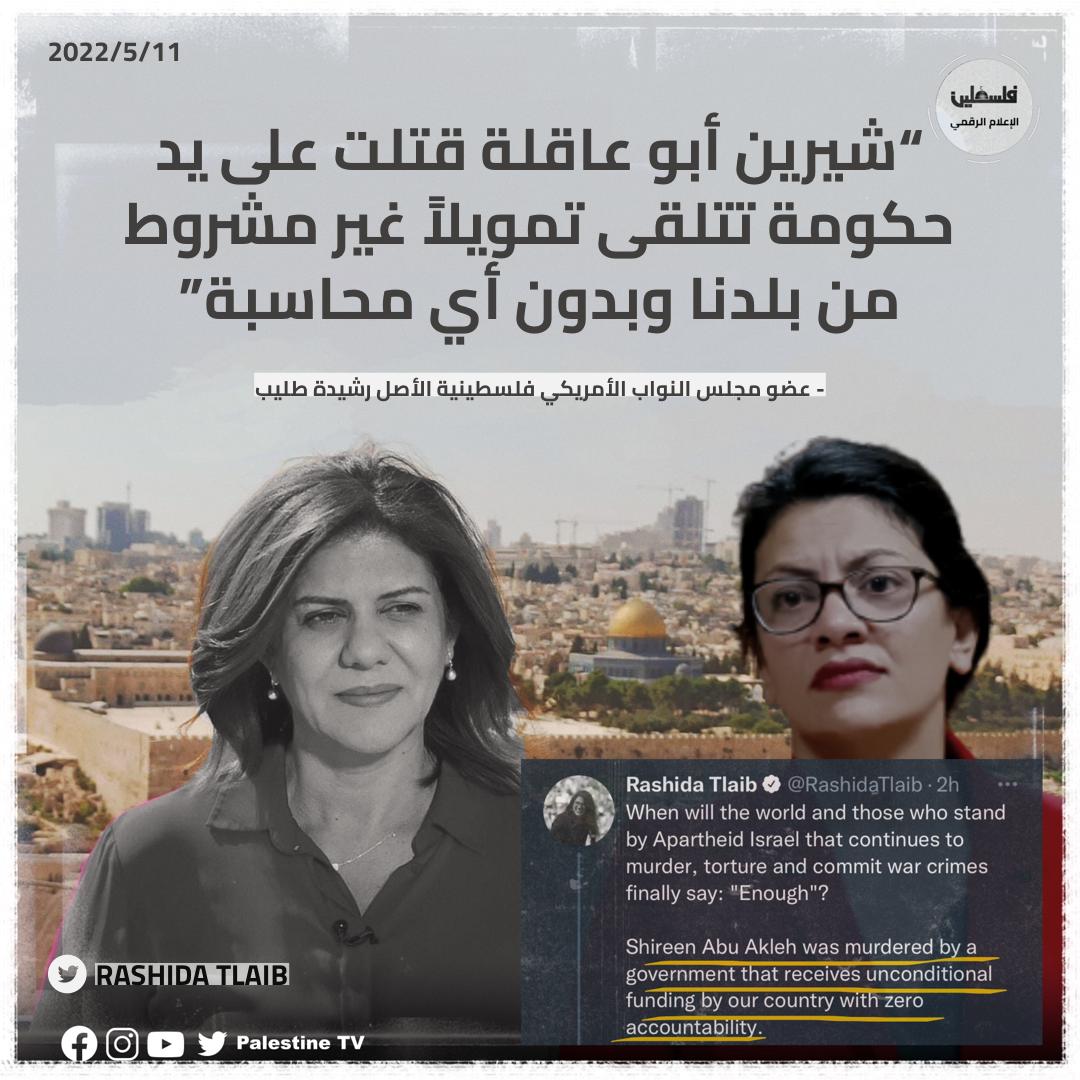 وأضافت أن شيرين قُتلت “على يد حكومة تتلقى تمويلا غير مشروط من بلدنا من دون أي محاسبة، ويجب أن تتوقف عمليات القتل الممولة أميركيا”.