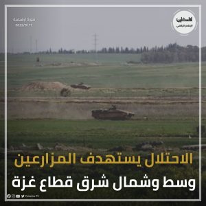 وأفاد مراسل “وفا”، بأن جنود الاحتلال المتمركزين في الأبراج العسكرية على الشريط الحدودي شرق غزة فتحت نيران رشاشاتها تجاه الأراضي الزراعية في منطقة المغازي وحي الزيتون وسط وشمال شرق مدينة غزة، ما أجبر المزارعين على مغادرة أراضيهم.
