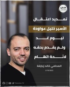 مددت محكمة الاحتلال اعتقال الأسير خليل عواودة ليوم غد الإثنين، بعد أن كان مقررا الإفراج عنه اليوم.