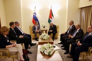 وشكر سيادته رئيس الوزراء السلوفيني، على مواقف بلاده الشجاعة والمبدئية بالاعتراف بدولة فلسطين، والتي تأتي استكمالاً لمواقف سلوفينيا الداعمة للقانون الدولي والشرعية الدولية، ودعم حق الشعب الفلسطيني بالحرية والاستقلال.