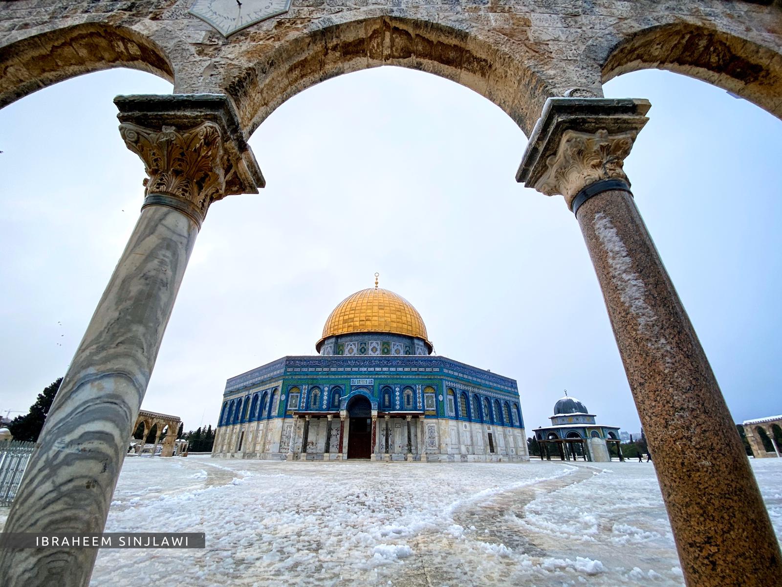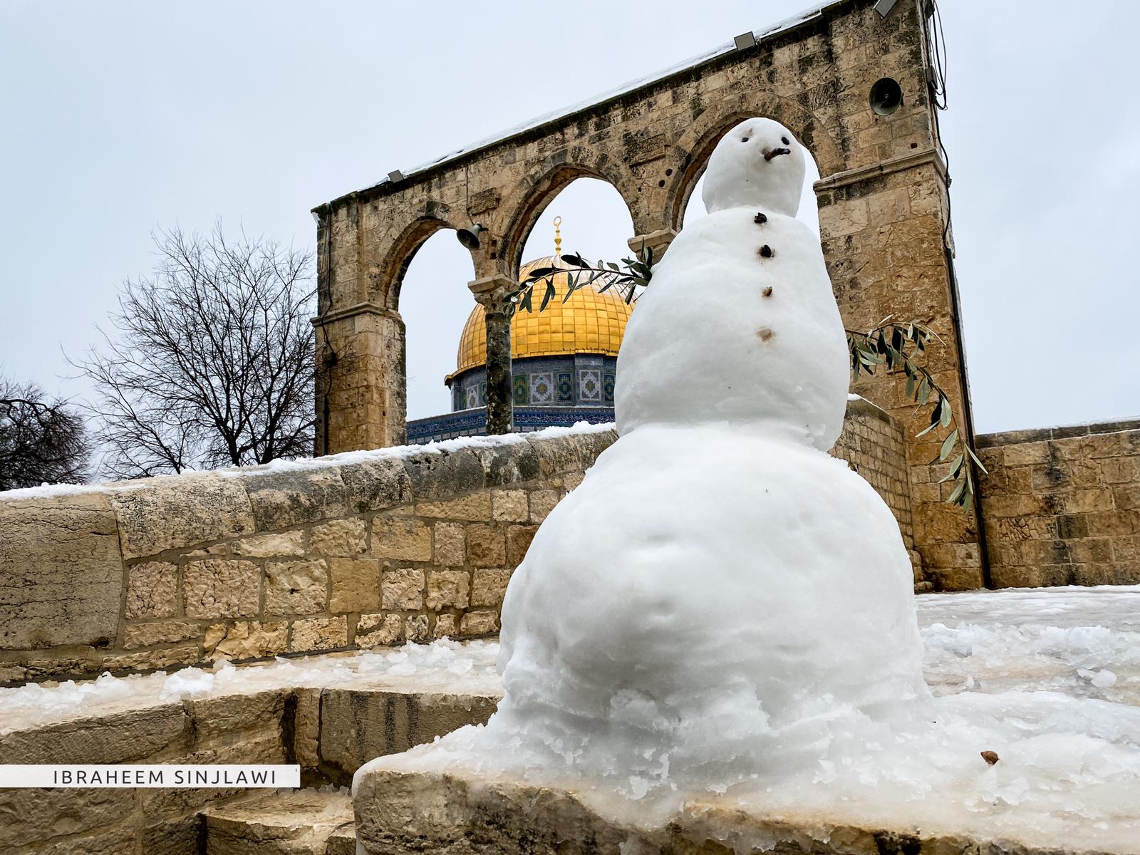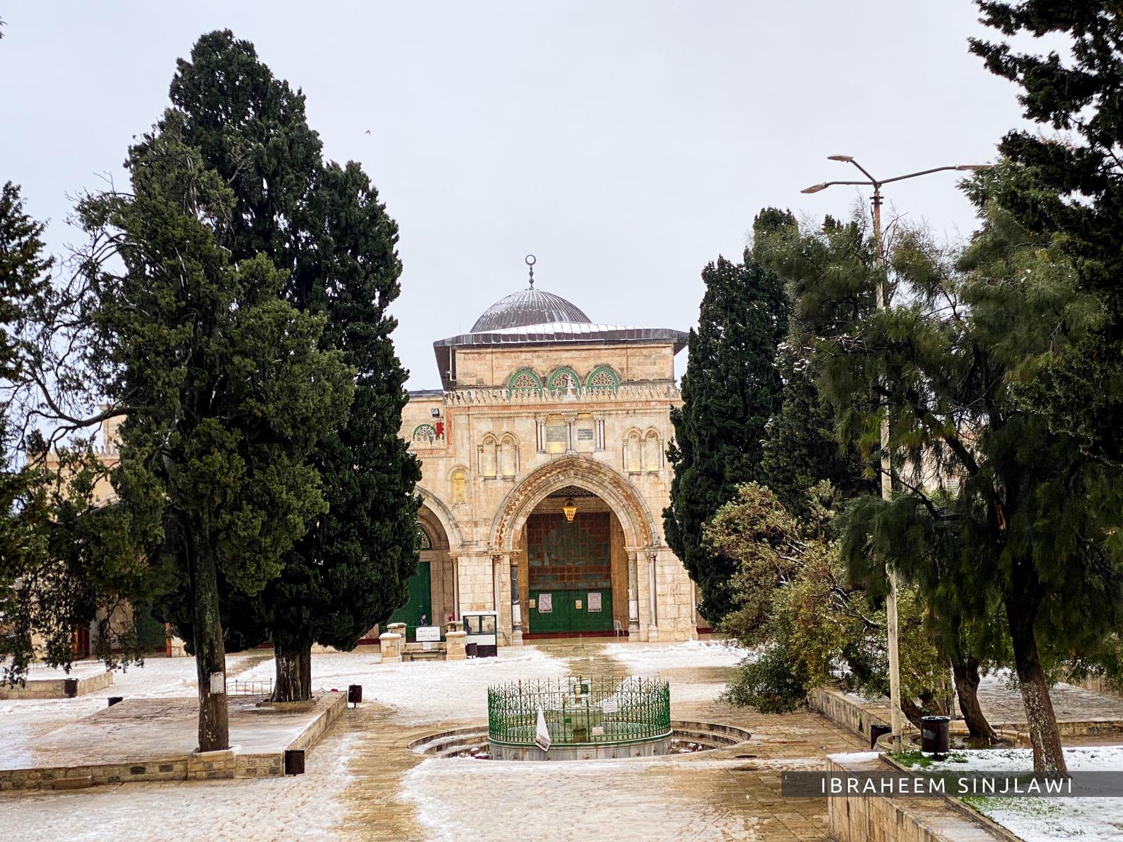 الثلوج في المسجد الأقصى المبارك. تصوير: إبراهيم السنجلاوي