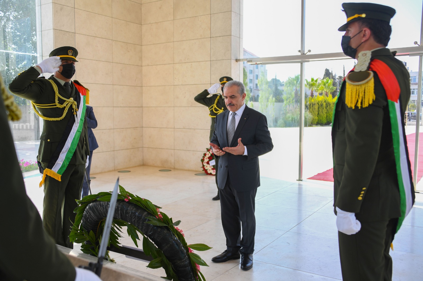 نيابة عن الرئيس: اشتية يضع إكليلا من الزهور على ضريح الشهيد أبو عمار