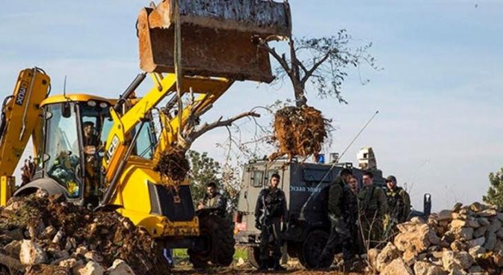 الاحتلال يقتلع عشرات أشجار الزيتون غرب بيت لحم